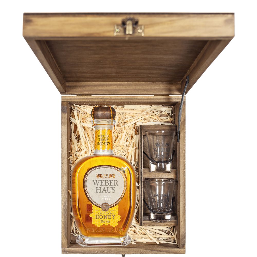 Licor Fino Honey Weber Haus: Uma criação harmoniosa que une a intensidade da cachaça premium com a doçura natural do mel puro. Versátil e sofisticado, é perfeito para adoçar coquetéis ou acompanhar sobremesas.